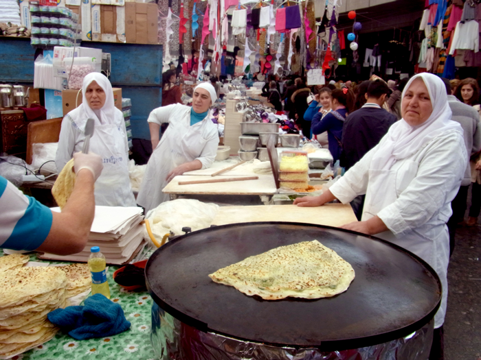 ギョズレメ -Gözleme- 2014年11月30日 に hayashi が投稿 小麦粉で作った薄い生地にほうれん草やチーズをはさんで、多めの油で焼いたもの。 パザル(青空市場)などでよく売られています。 皮はパリパリ、具はチーズの塩気が程よく効いていて、ぜひ食べていただきたい逸品。 市場のギョズレメ屋台